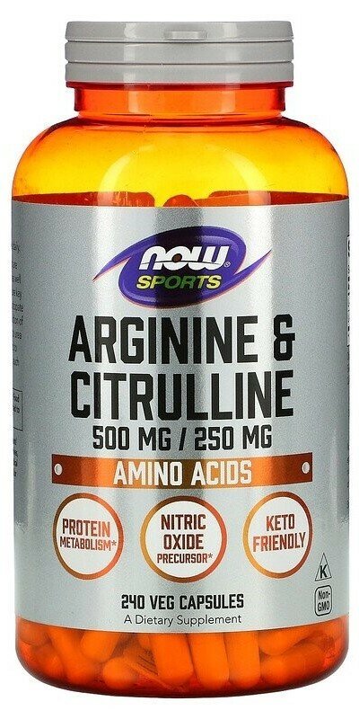 NOW Arginine 500 & Citrulline 250 – аминокислотный комплекс с мощным анаболическим действием. Продукт содержит два наиболее популярных среди атлетов компонента: аргинин и цитруллин, вещества активизируют процессы белкового обмена и последующую утилизацию продуктов их распада.