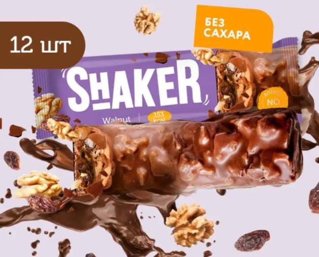 Предпочитаете спортивное питание? Следите за КБЖУ? Отказались от сладостей, ведь там вредный состав? Сладкое может быть и вкусным, и полезным. Попробуйте десерт без сахара - батончик Shaker 35 грамм компании FitnesSHOCK. Под шоколадной глазурью находится смесь из хрустящих кукурузных криспи, изюма, грецкого ореха и карамели. Белковые сладости, без глютена, пальмового масла и прочих вредных добавок. Сладкий вкус придают подсластители натурального происхождения - стевия и мальтит. За счет пищевых волокон низкокалорийный батончик насытит организм. Протеиновое питание - наслаждение вкусом забытых вкусняшек. Лакомство полезнее аналогов: в 8 раз ниже количество углеводов и в 3 раза калорийность. Для тех, кто предпочитает ПП (правильное питание) и ЗОЖ. Shaker - ваш полезный здоровый перекус!