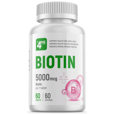 BIOTIN 5000 mcg от 4Me Nutrition – это источник витамина B7 (биотина) в таблетках с высокой дозировкой