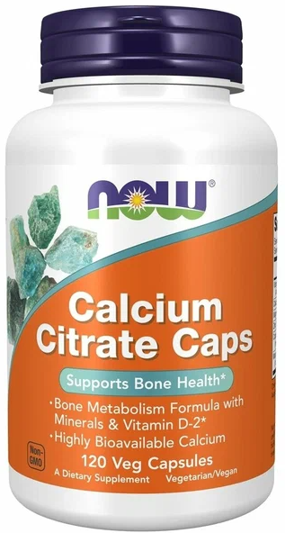 Calcium Citrate Caps от Now Foods – препарат, в составе которого магний, кальций, цинк, медь и марганец в биологически доступных формах. За счет содержания магния и кальция помогает нормализовать кальций-магниевый баланс в организме. Оказывает оздоровляющее воздействие на сердце, сосуды, кости, зубы, связки, кожу, репродуктивную систему, волосы, процессы получения энергии и поддержания тонуса мышц. Может применяться для ускоренного восстановления после травм, в том числе костей, а также при наборе мышечной массы. Помогает работе мозга и всей нервной системы, устраняя депрессию, усталость, судороги, боли, раздражительность и проблемы со сном.
