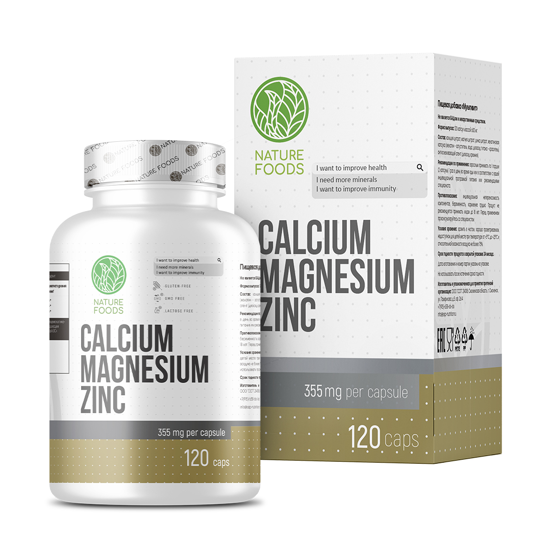Nature Foods Calcium Magnesium Zinc – это комплекс из двух основных макроэлементов – кальция и магния, а также микроэлемента цинка. Кальций и магний принимают главное участие в процессе сокращения и расслабления мышц. В том числе и сердечной мышцы – миокарда. Цинк же влияет на образование половых гормонов в мужском организме, обеспечивает нормальную работу предстательной железы.