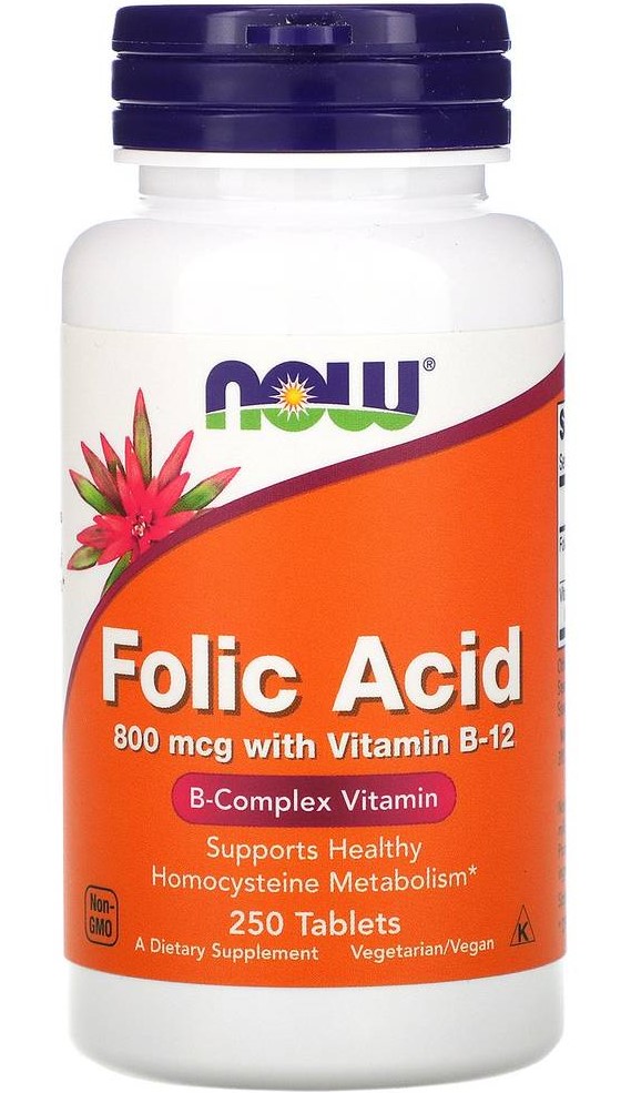 Folic Acid (Витамин B-9) – фолиевая кислота рекомендуется женщинам в период перед плодоношением, во время плодоношения, в период кормления грудью; это один из важных витаминов группы В. Фолиевая кислота играет важную роль в синтезе ДНК и РНК, производстве красных кровяных телец, сердечно-сосудистом здоровье, умственной деятельности и здоровье нервной системы. Прием адекватного количества фолиевой кислоты помогает поддерживать в норме уровень гомоцистеина. Минимальная рекомендуемая дозировка фолиевой кислоты для женщин составляет 400 мг.