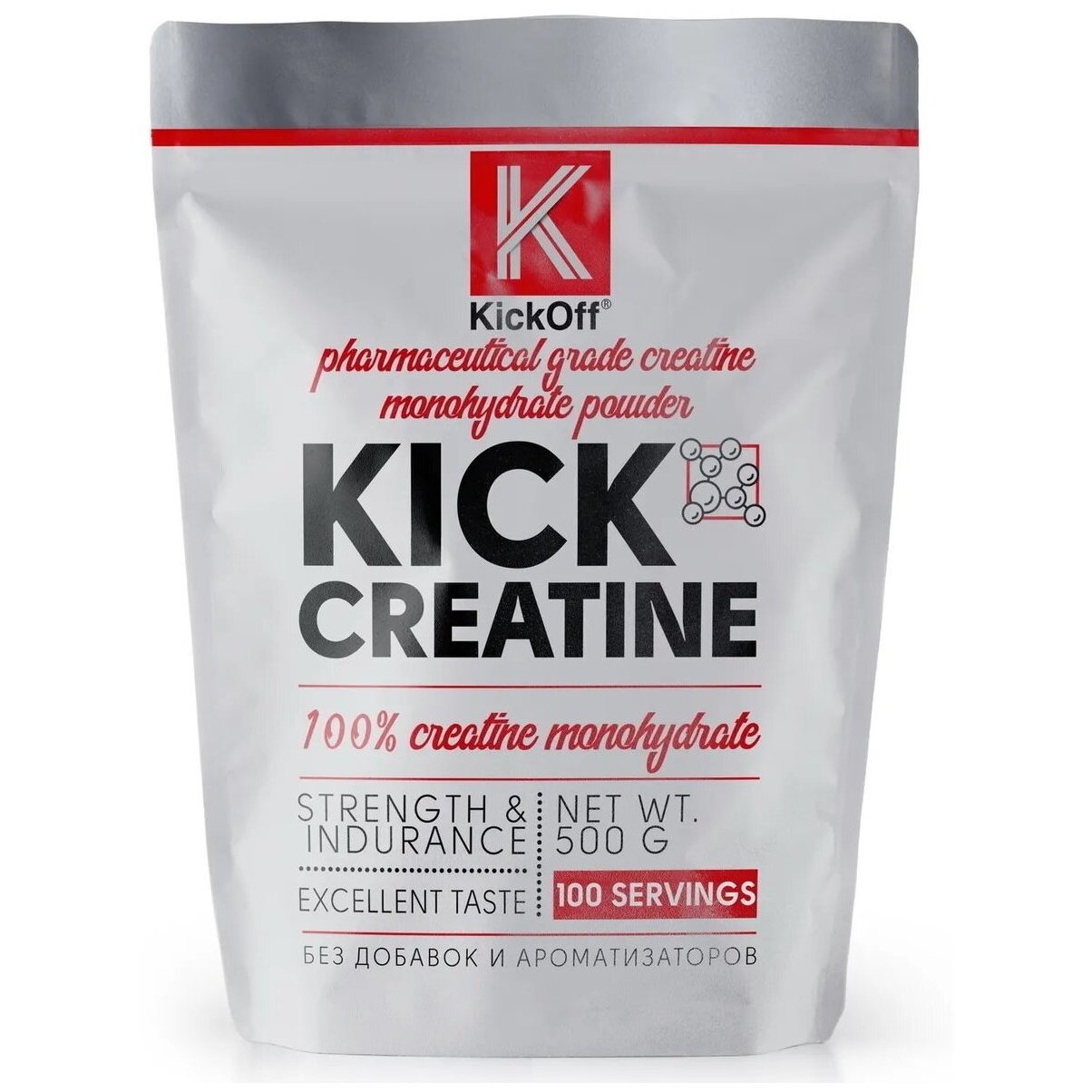 Особенностью продукта является многокомпонентная очистка, KICK CREATINE 500g от KickOff Nutrition не содержит примесей или пищевых добавок, благодаря чему достигается высокая биологическая активность.