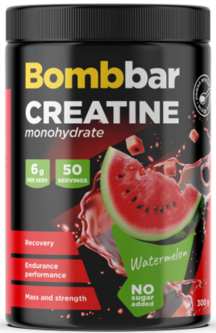 Креатин – одна из самых известных и изученных пищевых добавок, применяемых в спорте. 40% атлетов используют его в своих тренировках. Эта добавка служит источником энергии для работы мышц и помогает распределить энергию. Идеален для набора массы. Его прием дает возможность на тренировках выполнять большие усилия, работать с большей мощностью, испытывать меньше усталости, быстрее восстанавливаться, быстрее наращивать мышечную массу, и польза от тренировки становится значительно выше, чем без использования добавки. С ним спортсмены могут сделать на 20-30% больше. Bombbar использует форму креатина моногидрата. В настоящее время моногидрат является наиболее широко изученной и эффективной формой для использования в пищевых добавках с точки зрения усвоения мышцами и способности увеличивать нагрузочную способность ткани при нагрузках высокой интенсивности. Бренд Bombbar гарантирует высочайшее качество товаров. На производстве используется качественное европейское сырье от сертифицированных поставщиков и проводится усиленный лабораторный контроль.