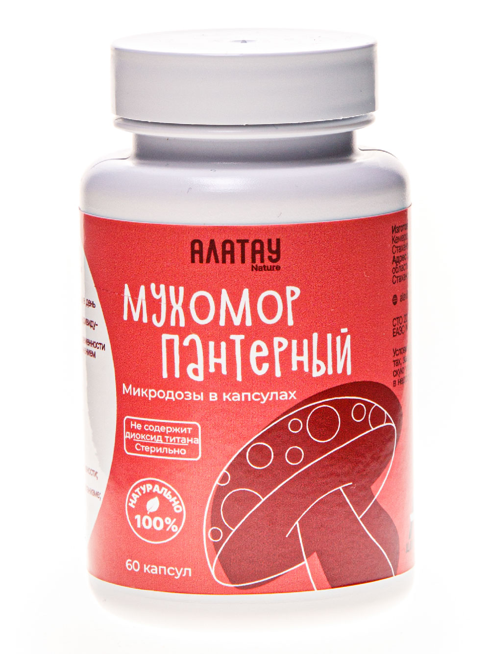 Благодаря содержанию психоактивных веществ, микродозинг пантерного мухомора в капсулах положительно воздействует на психоэмоциональное состояние человека. В его составе большое количество антихолинергических алкалоидов, которые повышают энергию и выносливость организма.