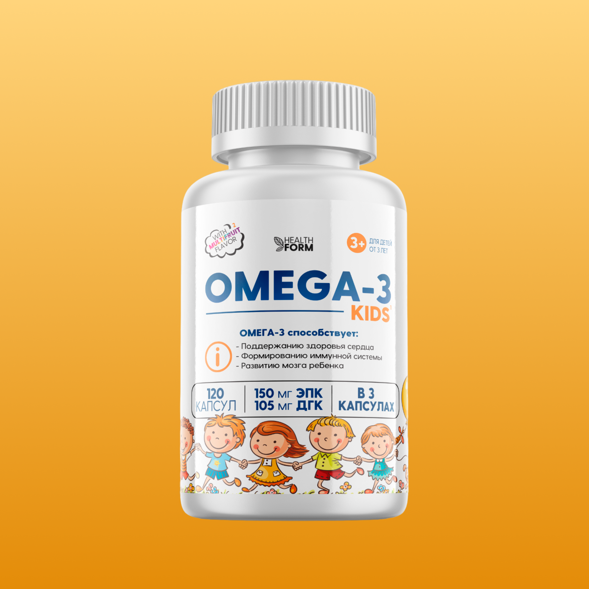 1 порция OMEGA-3 Kids в день помогает ребенку от 3 лет и старше получить достаточное количество полезных жиров для здорового роста и развития мозга, сердца и иммунитета.