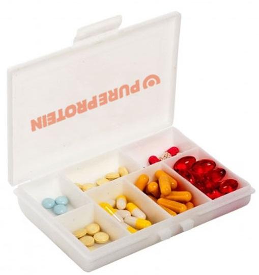 Таблетница Pureprotein легкая и функциональная, позволяет удобно хранить и транспортировать нужное количество капсул и/или таблеток; небольшой по размеру и удобный атрибут элитных спортсменов.
