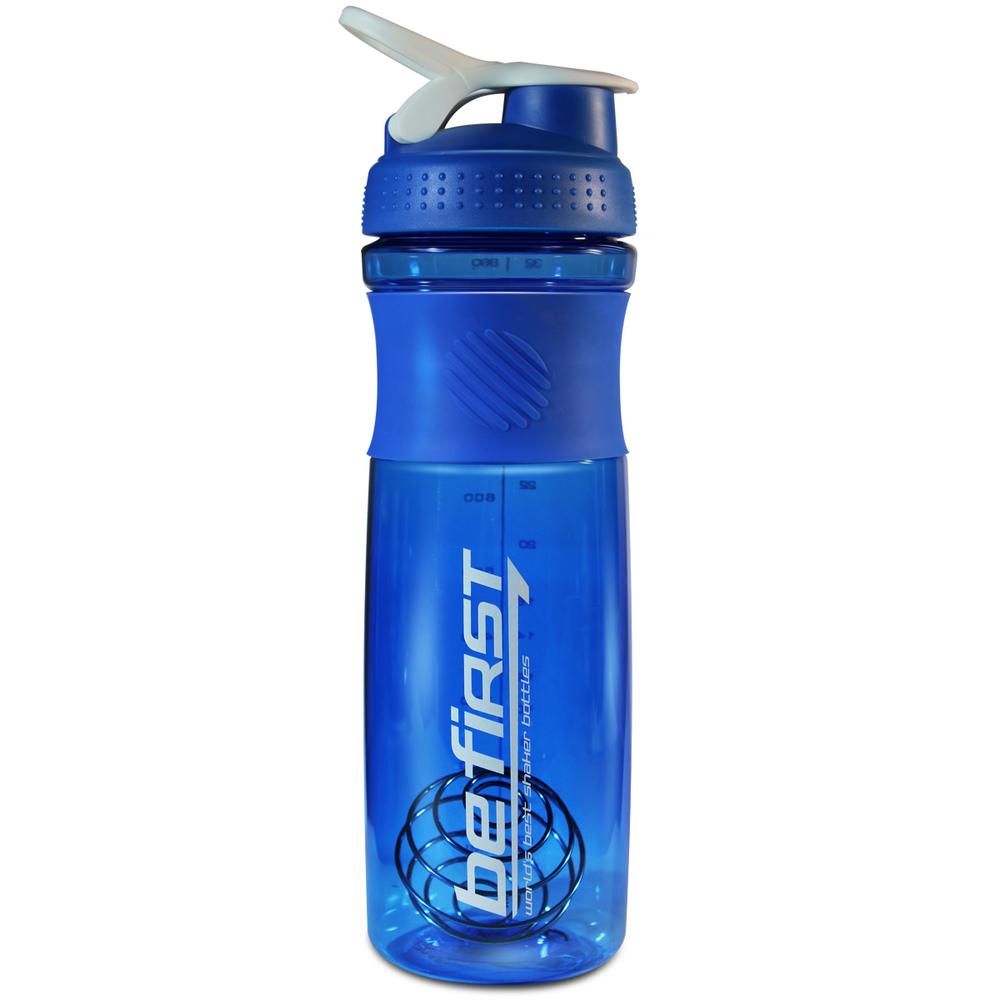 Корпус у пластикового шейкера на 1000 мл довольно длинный и изящный – на первый взгляд даже не скажешь, что в него помещается столько жидкости. Он полностью прозрачный, что позволяет видеть объем наливаемой жидкости.