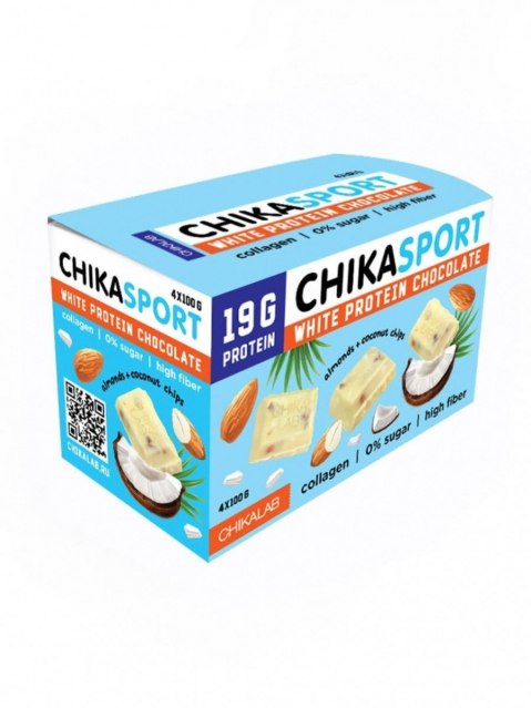 белый шоколад (олигофруктоза (пищевые волокна), какао масло, молоко сухое цельное, концентрат сывороточного белка, инулин (пищевые волокна), гидролизат коллагена, эмульгатор (соевый лецитин), ароматизаторы натуральные, подсластитель (сукралоза)), миндаль, кокосовые чипсы. Белый шоколад содержит общий сухой остаток какао не менее 25%, сухой молочный остаток не менее 18%, молочный жир не менее 4%.
