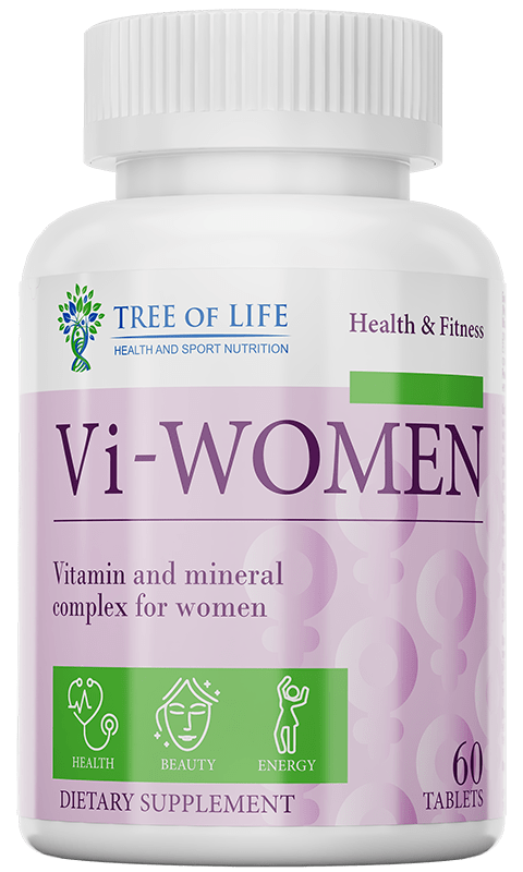 Vi-Women – это специально разработанный комплекс витаминов и минералов, предназначенный для удовлетворения уникальных потребностей женского организма. Эта добавка представляет собой источник витаминов А, С, D3, Е, К1, а также всего комплекса витаминов группы В: В1, В2, В3, В5, В6, В7, В9, В12. Кроме того, в её состав входят такие необходимые минералы, как железо, цинк, медь, марганец, молибден, йод, селен, хром, ванадий, фтор, бор и кобальт.