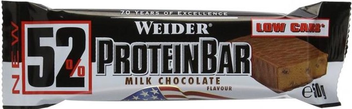 Высокобелковый спортивный батончик Weider 52% Protein Bar содержит 26 г многокомпонентного белка высокого качества, способствующий поддержанию роста мышц и предотвращению развития катаболических процессов в них. Протеиновые батончики идеально подходят для восполнения энергетических запасов во время длинных перерывов между приемами пищи или в качестве пост-тренировочного питания, поскольку 52 % Protein Bar содержит молочный и яичный белки, а также казеин.